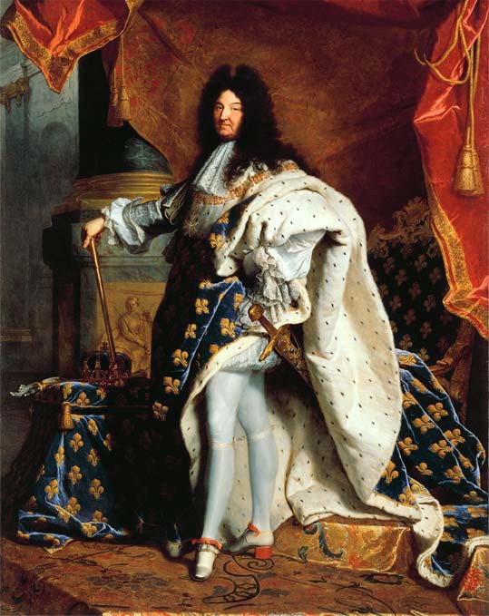 Portrait of Louis XIV (1701), King of France, in a dramatic ensemble complete with a pair of men’s heels.