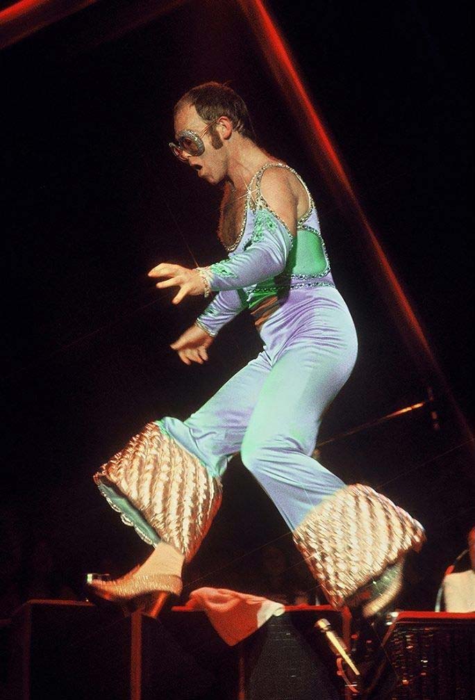 Elton John during a 1974 concert in Los Angeles, California.